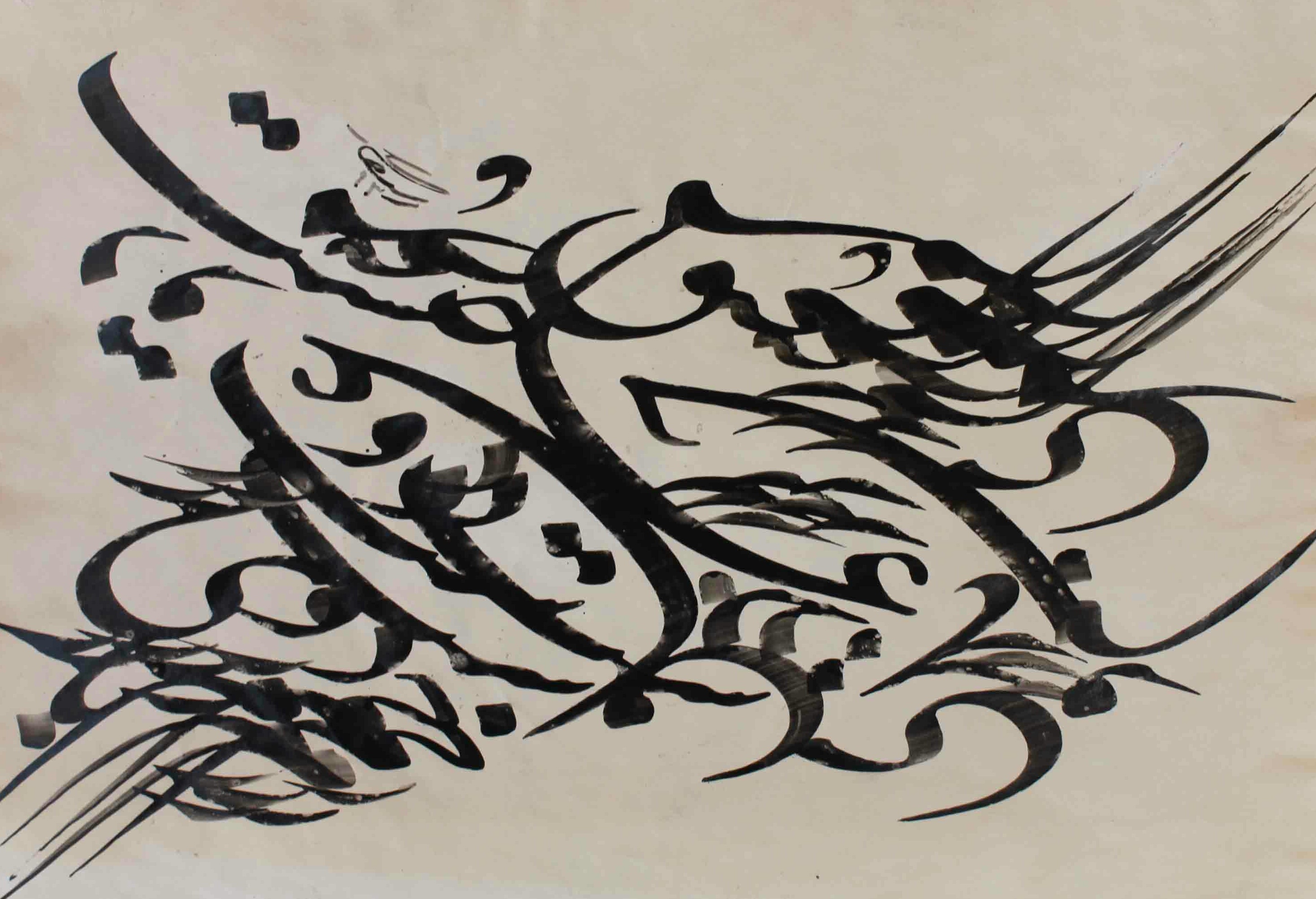آنجا که خط جلوه گری آن چندین برابر شده وجنبه هنری آن بیشتر نمایان خواهد شد بی گمان قطعات سیاه مشق می باشد چرا که هنرمند در لحظه در چینش حروف وکلمات صفحه دست به انتزاعی ماندنی می زند و از بند معنای حروف و کلمات رهایی پیدا کرده و گویی شانه از بار مسئولیت ادبی خود خالی کرده و در میدان می آید و با پرو بالی حالا رها شده رقصی چنین میانه میدانش را همگان به نظاره می نشینند.